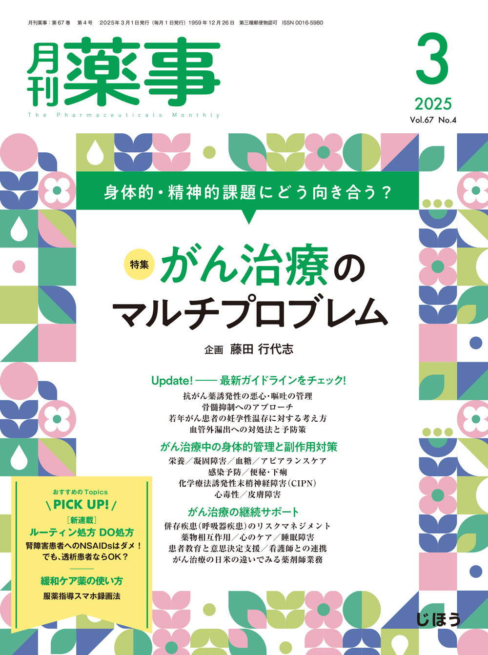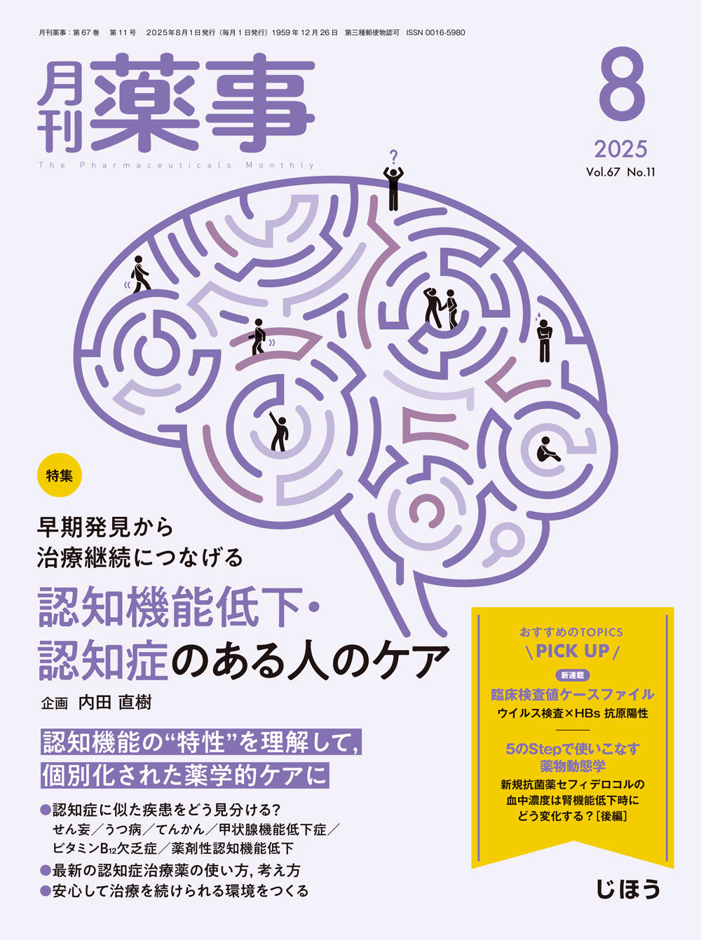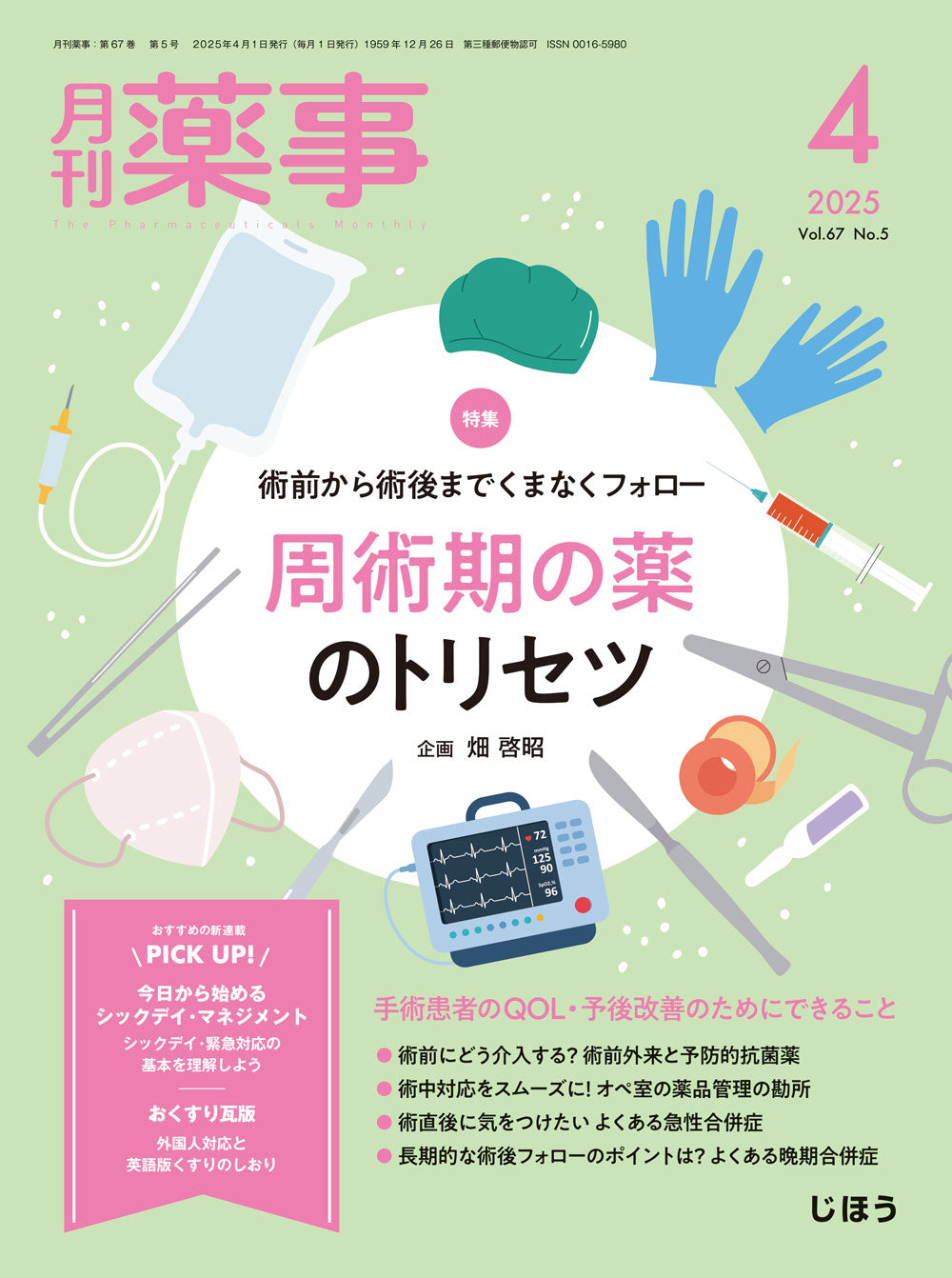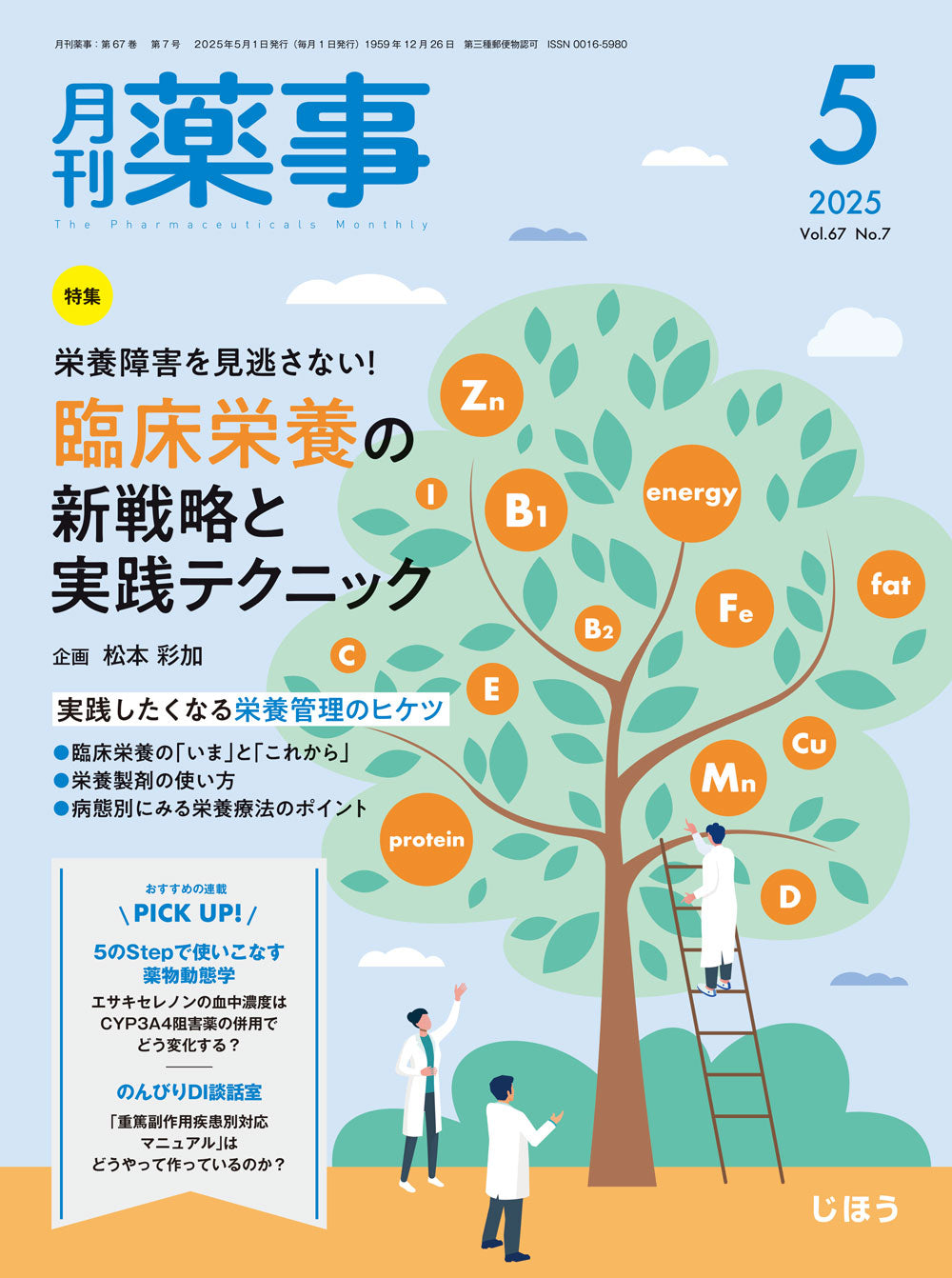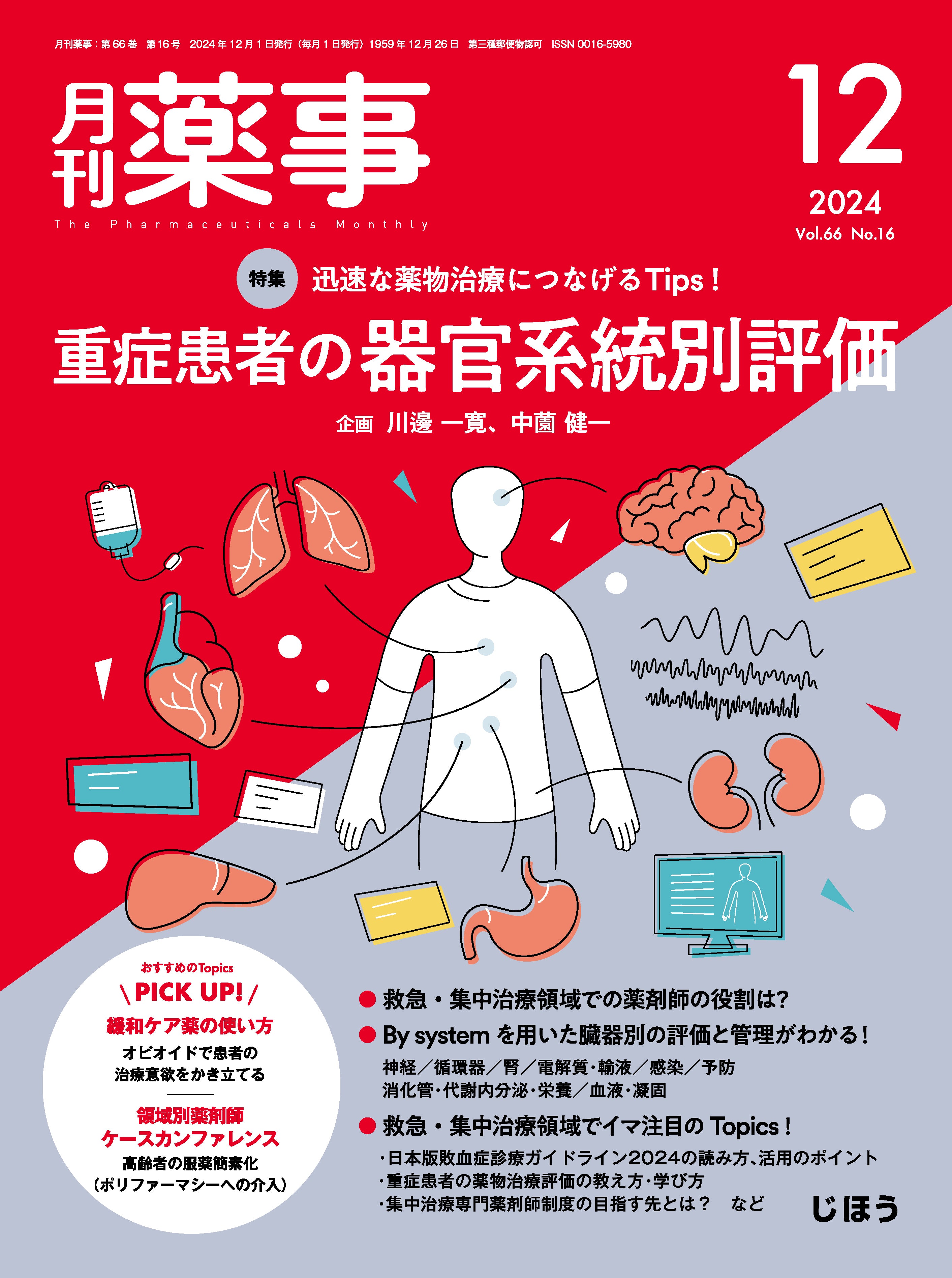 『月刊薬事』は、忙しい臨床現場で活躍する薬剤師の業務を強力にサポートする、最新の薬剤業務関連情報、医薬品情報、医療情報などを提供していきます。さらに、薬学教育、医薬品研究開発や臨床現場での相互連携に欠かせない情報なども盛り込んでお届けします。